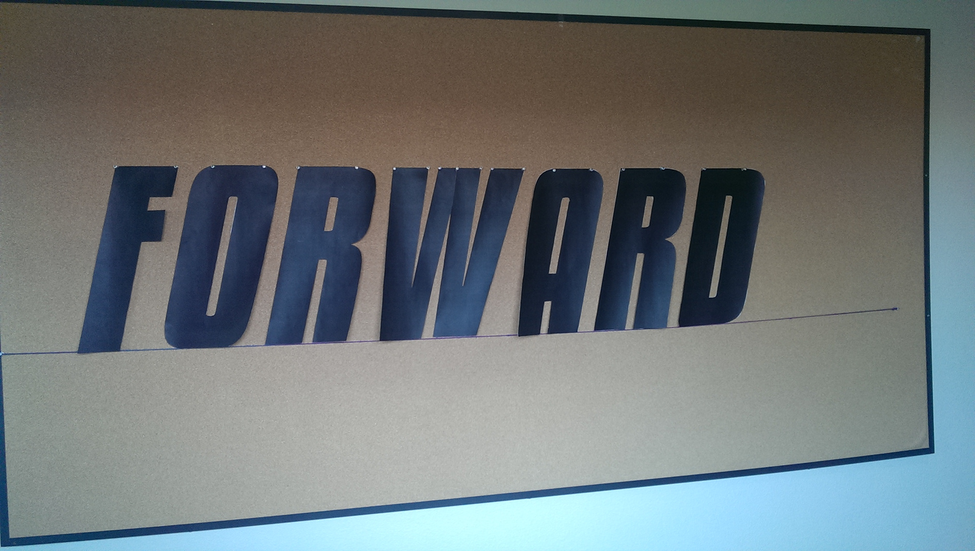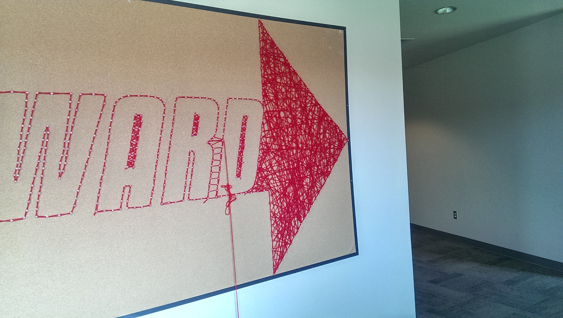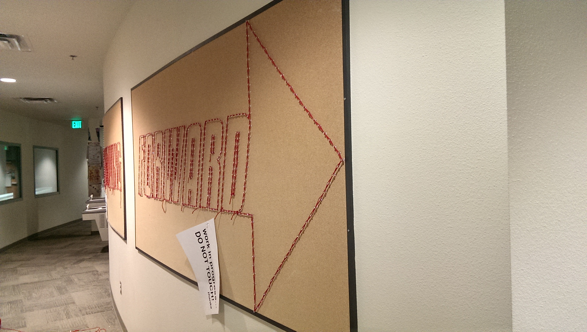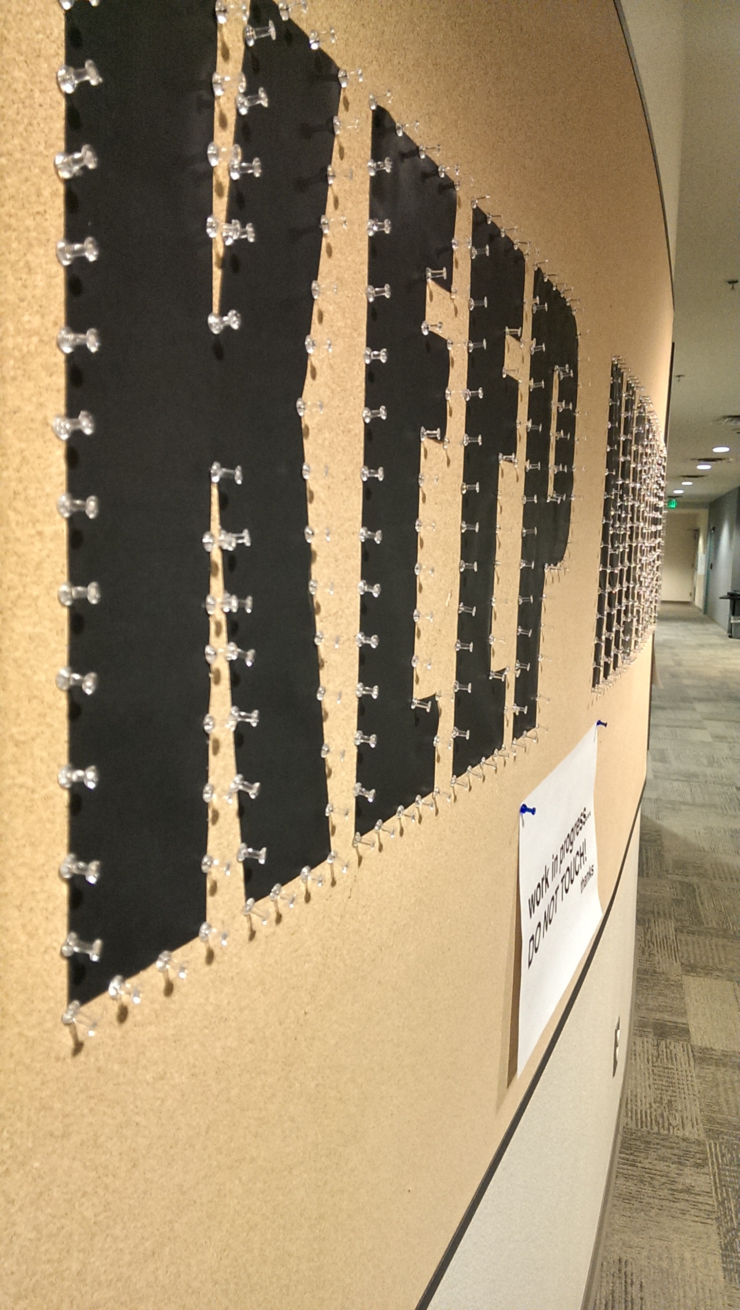 Keep moving forward, words taken from Walt Disney. This is an exparimental typogarphy piece using a lot of yarn and over 1000 pins.